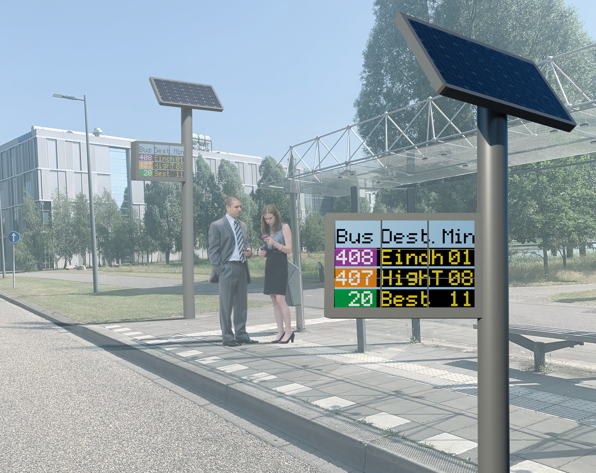 Designing a low-powered and solar-energy driven bus stop using the display technology of Etulipa.