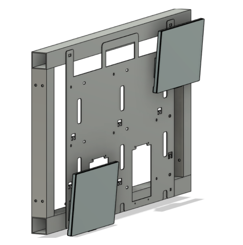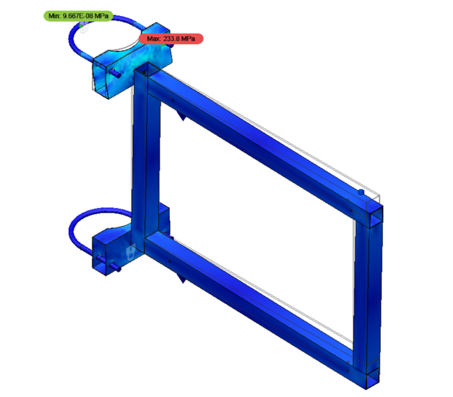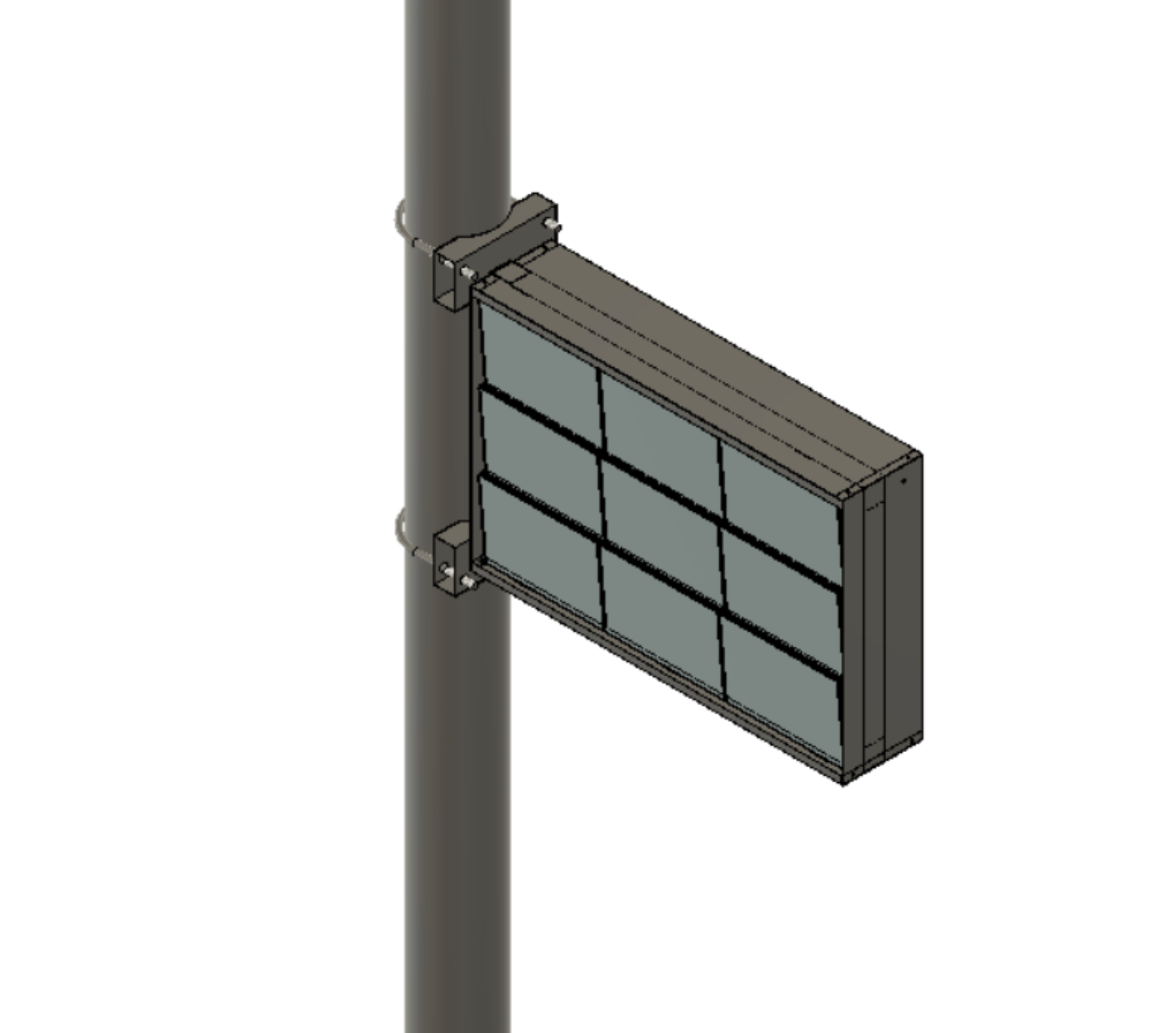 After we concluded what the display should look like, it was time to start CAD engineer the design. We came across many obstacles of design choices that seemed nice on paper, but would not sustain considering the physics of the system. A big challenge was the electronics, battery, display tiles and other components that would have to fit in the display box, while maintaining a sleek design. The display is also considerably heavy, so how do we make sure it does not break off the pole? By using Fusion 360, we were able to simulate weight, strength and other factors and check the prototype.